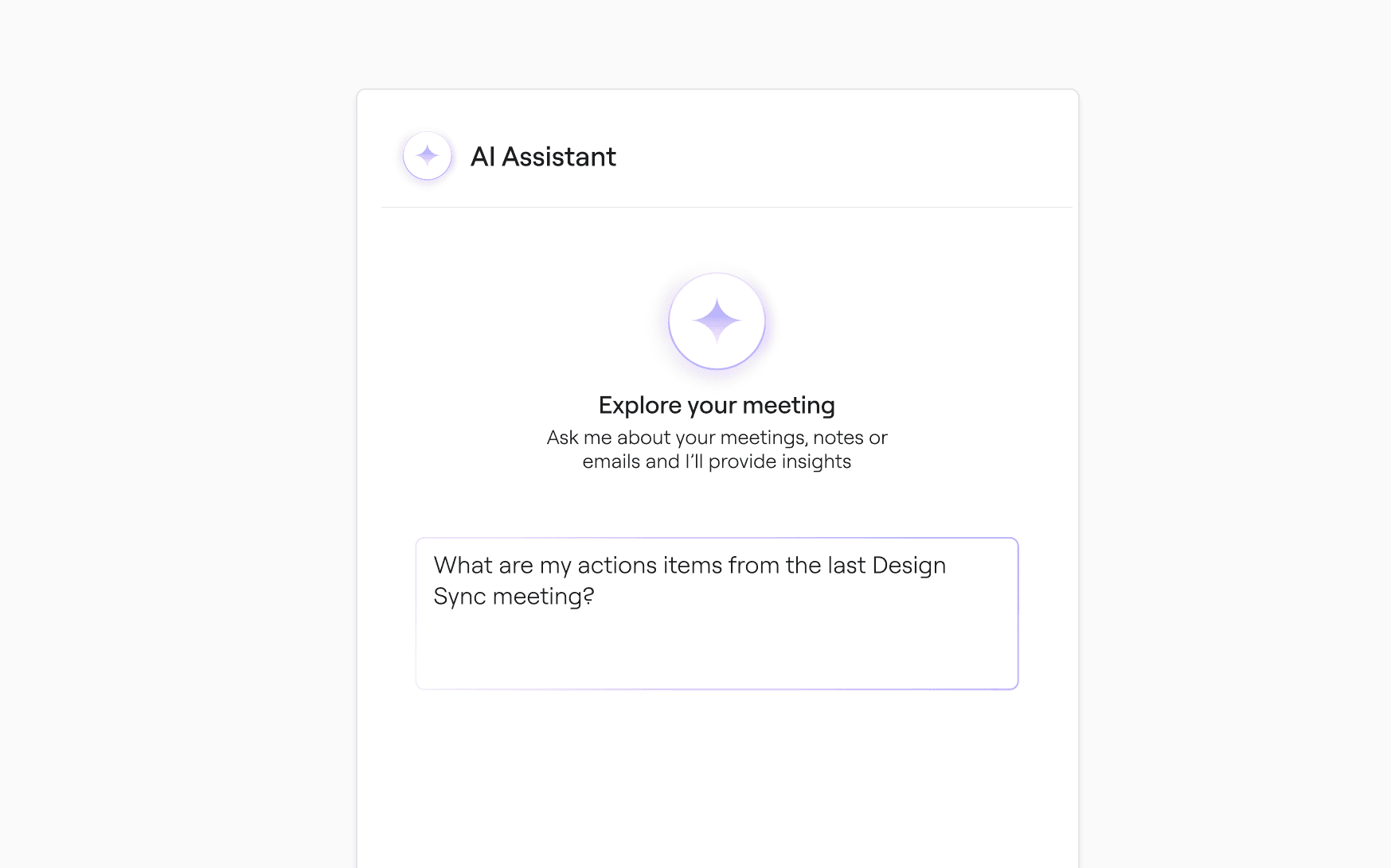 A faster way to find what you're looking for in your meeting notes. Chat with Multiplayer and let it find what you're looking for across your meeting history, so you can get back to the task at hand quickly.